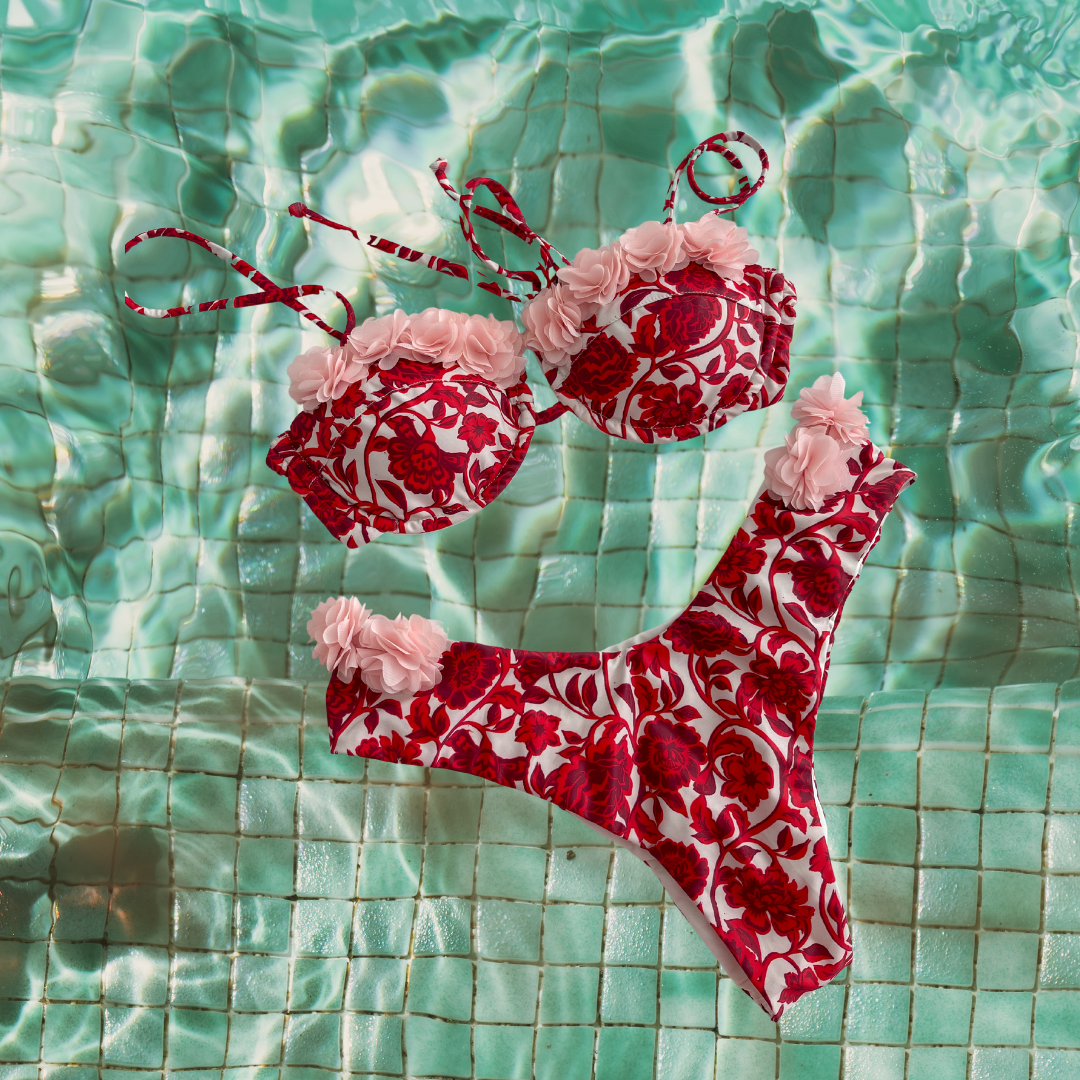 Rose Sangria Floral Full Coverage Bikini Bottom